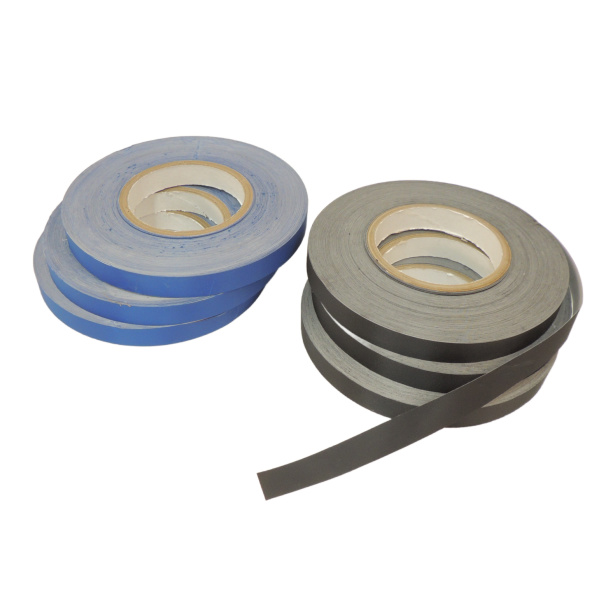 This is the tape we use for trim on our Laminate Duffle Bags, card holders, luggage tags and many other finished products. It is adhesive backed sailcloth, actually insignia cloth slit to 5/8". We order this special just for us, because 1" Draft Stripe Tape is just too wide. You won't find this width anywhere else! It is available in black or blue. We sell it by the foot, or on 150 foot rolls.