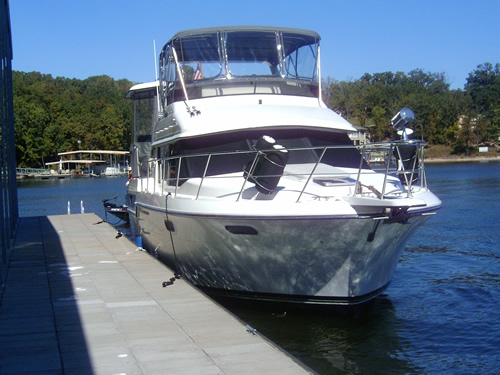 Please allow me to thank you again for all of the help with my recent project. Attached are a few photos of our 38' Carver. The project included full enclosure replacement with Strataglass on the bridge portion, Phifertex window shades, Nautolex exterior seat upholstery, and various other Sunbrella covers. Before this undertaking, I had never sewn anything before other than a Cub Scout merit badge. With a good used machine and great tips from Sailmakers, I feel the project was a complete success. Your website allowed me to purchase materials that might otherwise have only been available to wholesalers. A service such as this is invaluable to us "do it yourselfers". Thanks for giving us the opportunity and means to learn and succeed, and thanks again for the excellent service and website!